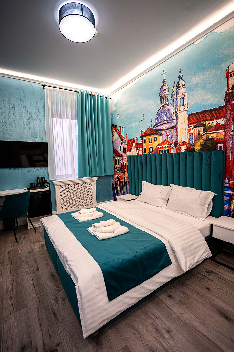 Studiourile noastre tematice îți oferă o experiență deosebită: Veneția, Paris și Budapesta – camere duble decorate cu atenție pentru a reflecta atmosfera romantică și vibrantă a acestor orașe. Londra – o cameră triplă care surprinde stilul cosmopolit și eleganța capitalei britanice.
